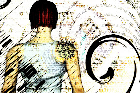 So I just kicked ass on an assignment that had me really stumped and worried. It's not perfect but not bad for last-minute work I think. The assignment was a graphical self-portrait in the style of a randomly chosen graphic designer. The name I drew was Vicky Newman, who's work is really beautiful, a bit more flowery than my style but I ran with it.